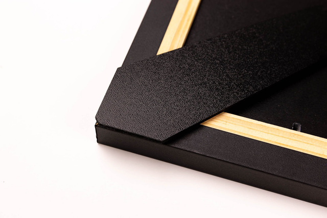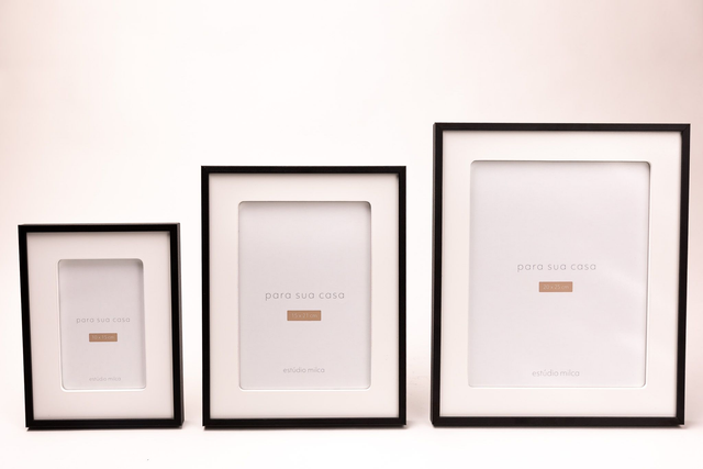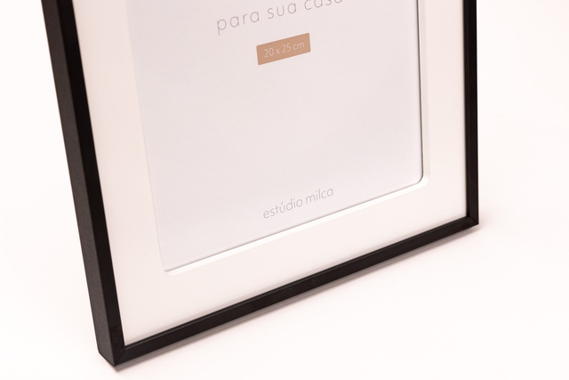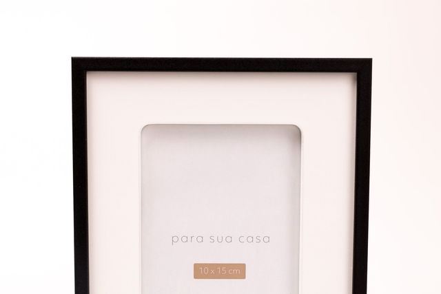 Este belíssimo porta-retrato exibe uma moldura preta fina e discreta, com um acabamento fosco que confere um ar contemporâneo e elegante.